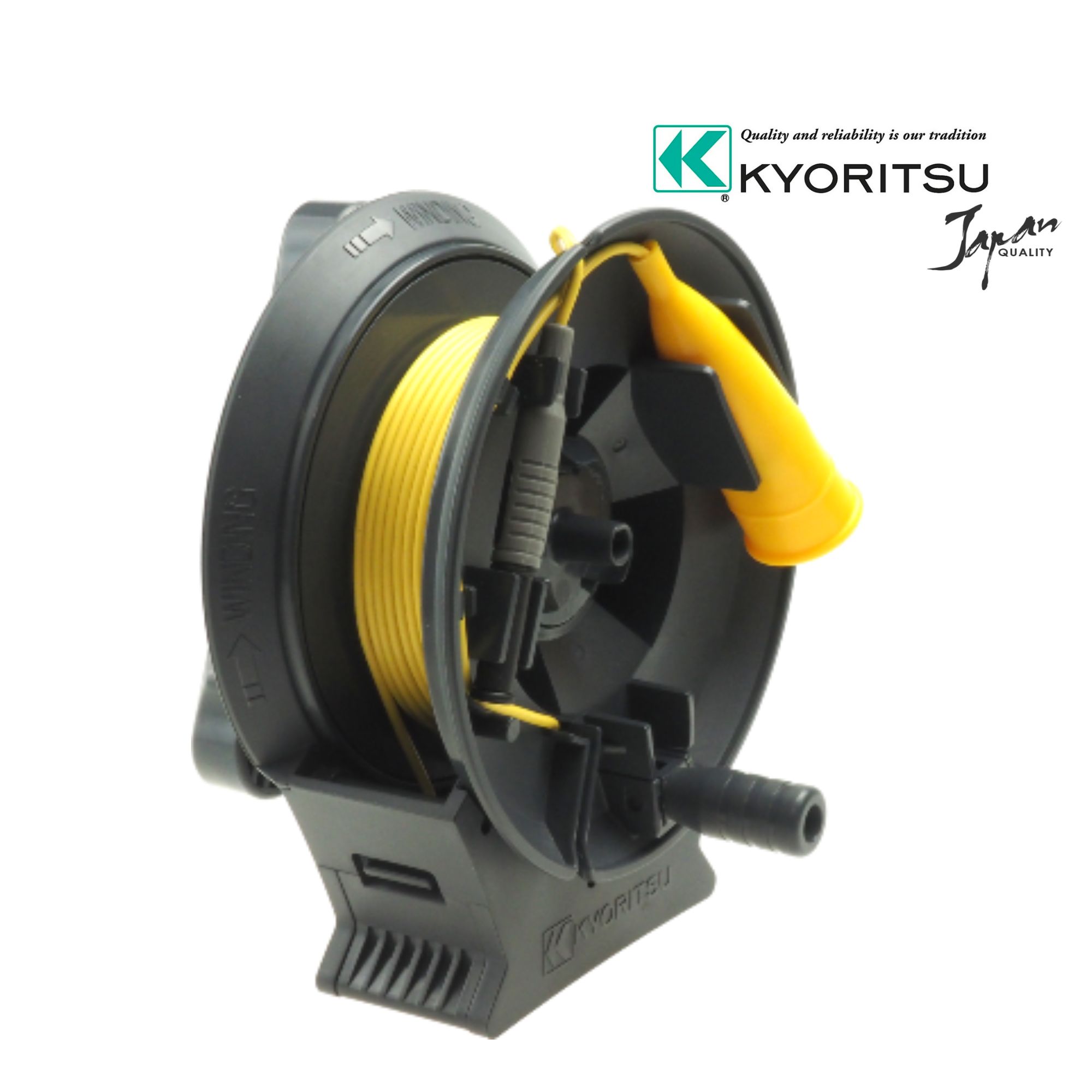 10 m dlouhý žlutý kabel na cívce pro testování zemního odporu určený především pro měřiče uzemnění Kyoritsu KEW 4105DL, 4105DL-H, 4105DLBT, 4105DLBT-H.