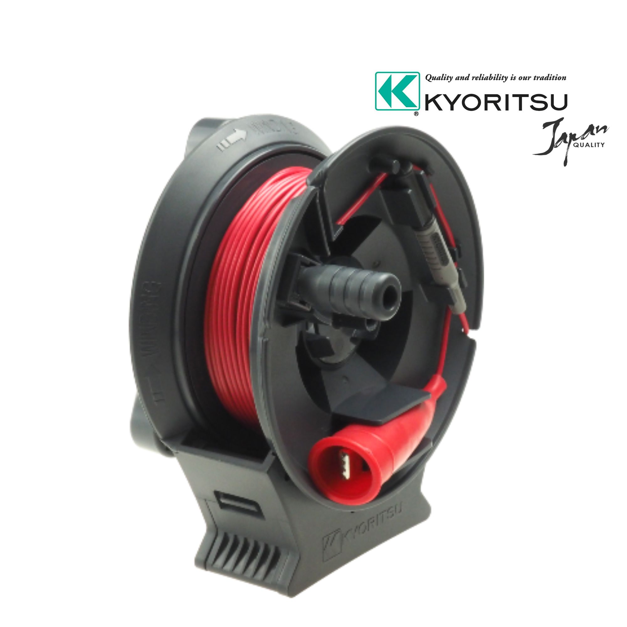 20 m dlouhý červený kabel na cívce pro testování zemního odporu určený především pro měřiče uzemnění Kyoritsu KEW 4105DL, 4105DL-H, 4105DLBT, 4105DLBT-H.